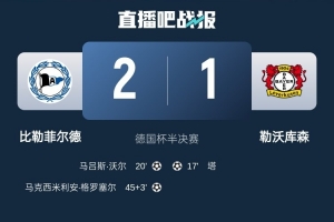 体育资讯4月2日讯 比勒菲尔德爆冷2-1战胜勒沃库森,成为历史上第四支晋级德国杯决赛的德丙球队。